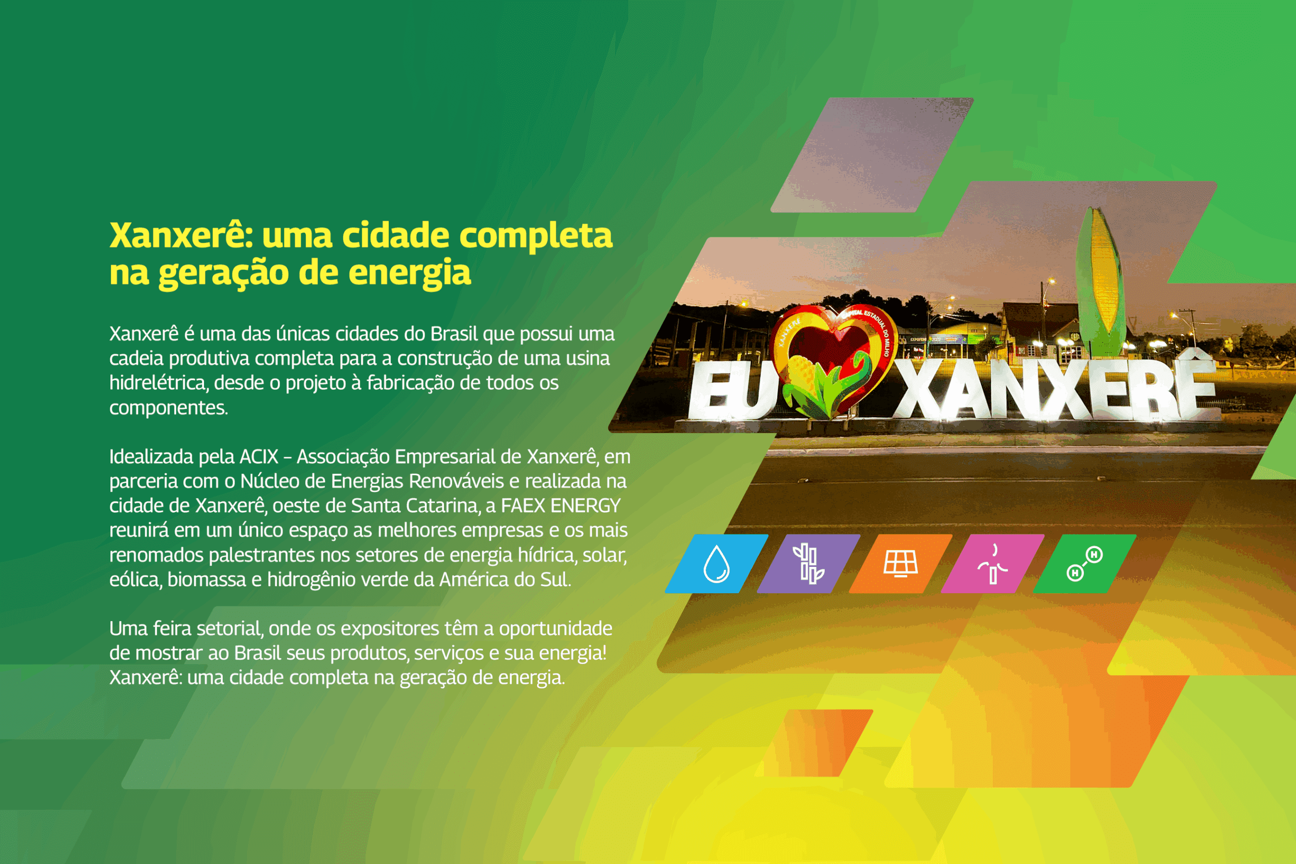 Xanxerê, no Oeste de Santa Catarina, é um dos poucos municípios do Brasil com uma cadeia produtiva completa para a construção de usinas hidrelétricas, do projeto à fabricação de todos os componentes. Neste cenário forte e produtivo nasceu a FAEX ENERGY, idealizada pela ACIX – Associação Empresarial de Xanxerê, em parceria com o Núcleo de Energias Renováveis.