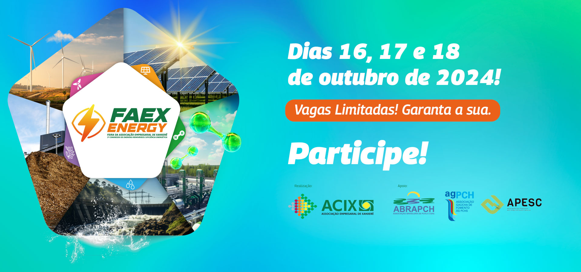 Idealizada pela Associação Empresarial de Xanxerê – ACIX com o apoio da ABRAPCH, AGPCH e da APESC, a terceira edição da feira tem como objetivo consolidar-se como referência dentro do cenário nacional e da América do Sul no setor de energia hídrica, solar, eólica, biomassa e hidrogênio verde.