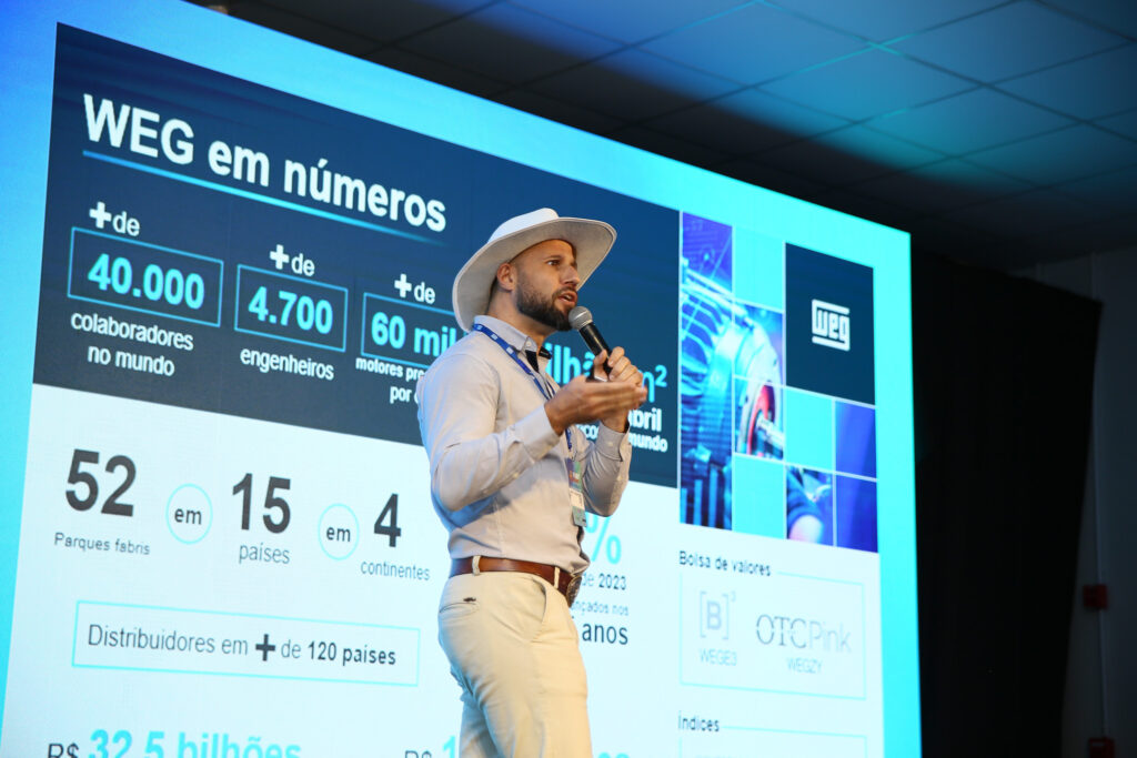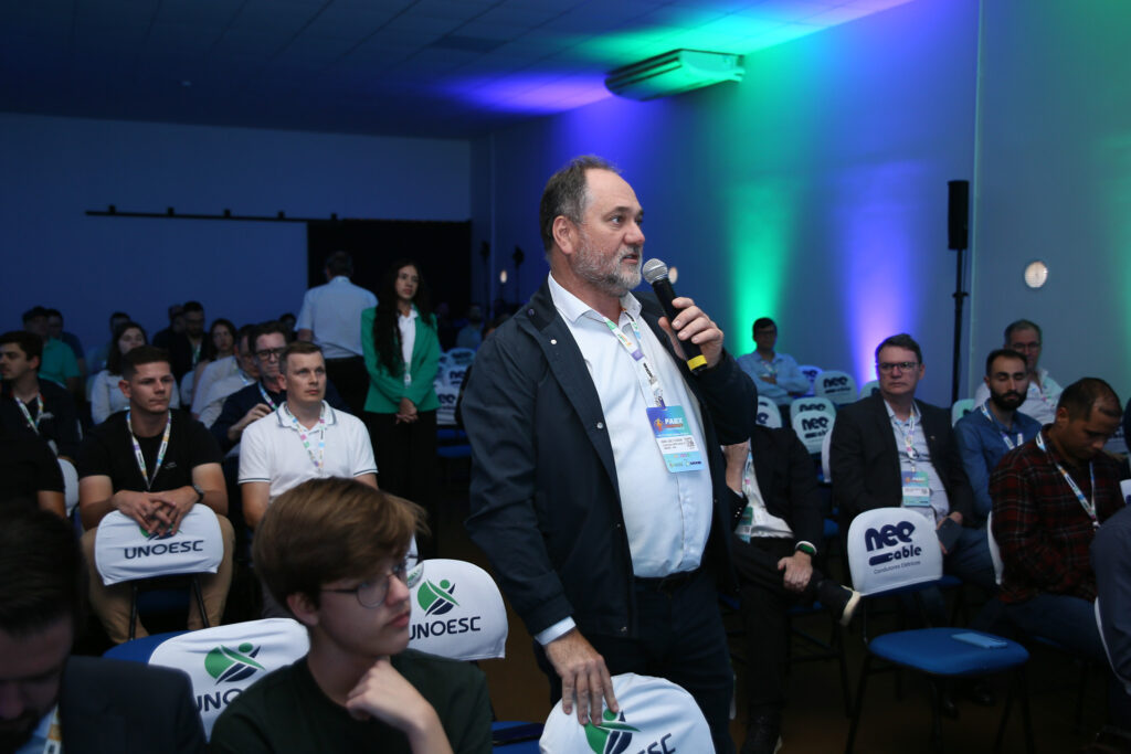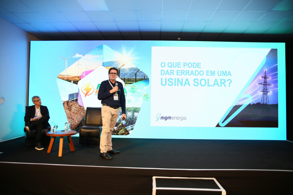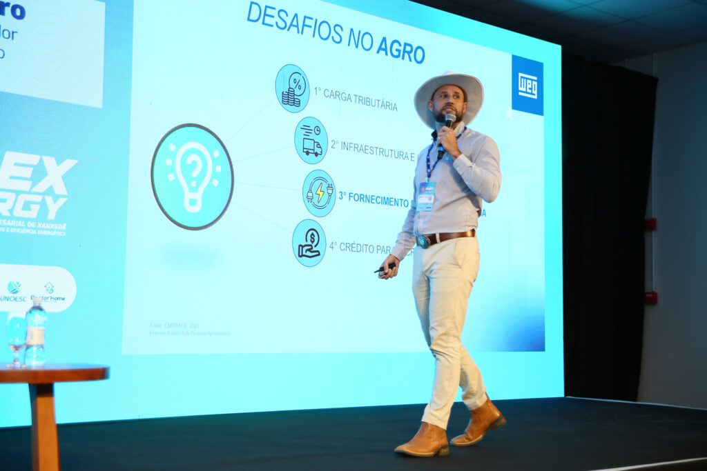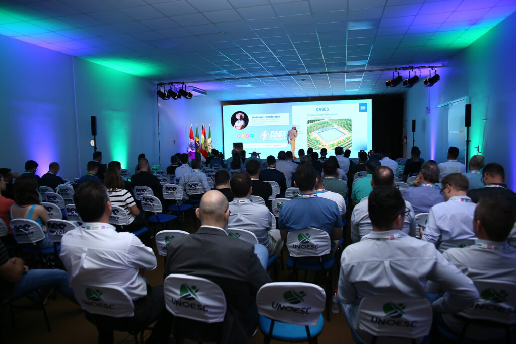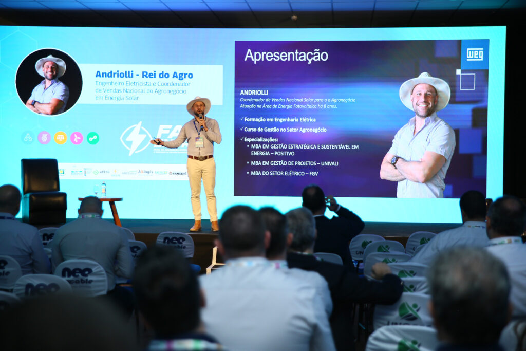 Congresso iniciou com o Rei do Agro, Carlos Andriolli, engenheiro eletricista e coordenador de vendas nacional do agronegócio em energia solar, carlos fez mais de r$1 bilhão em vendas no segmento, com um aumento de 1.500% nas vendas do portfólio nos últimos quatro anos e trouxe em sua palestra informações sobre ações para ampliar o sucesso no ramo agrivoltaico, com soluções práticas e cases de sucesso.